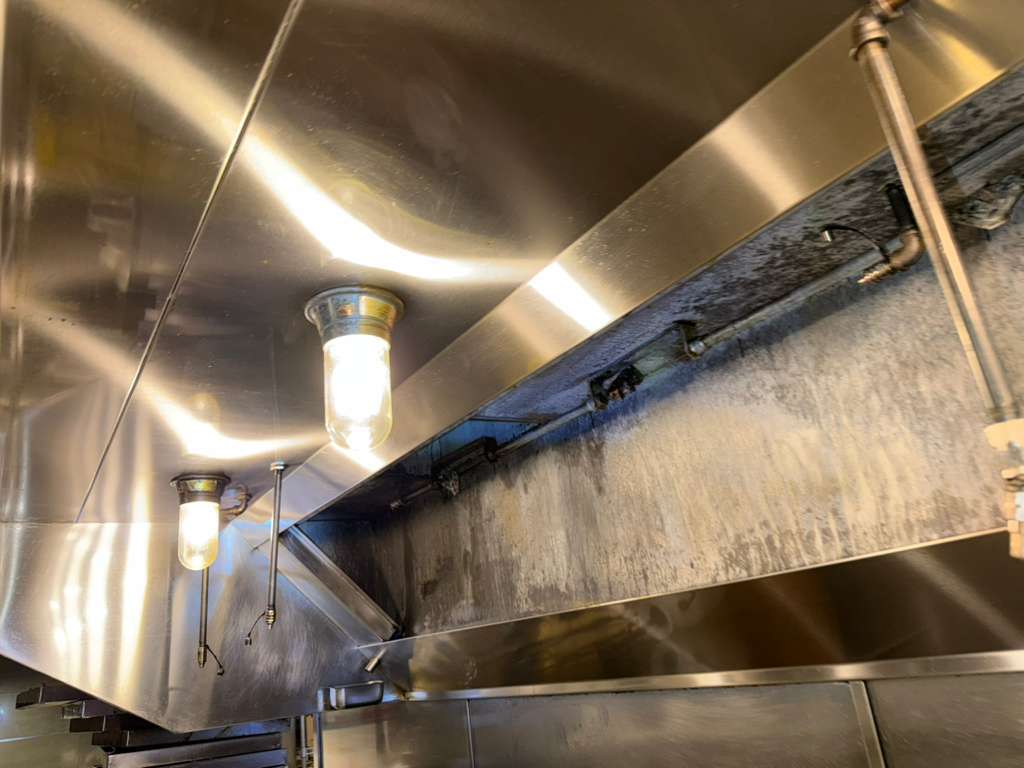 Grease pooling in the hood or dripping onto equipment means your hood's drainage channels are blocked — a sign the system is overdue for cleaning.